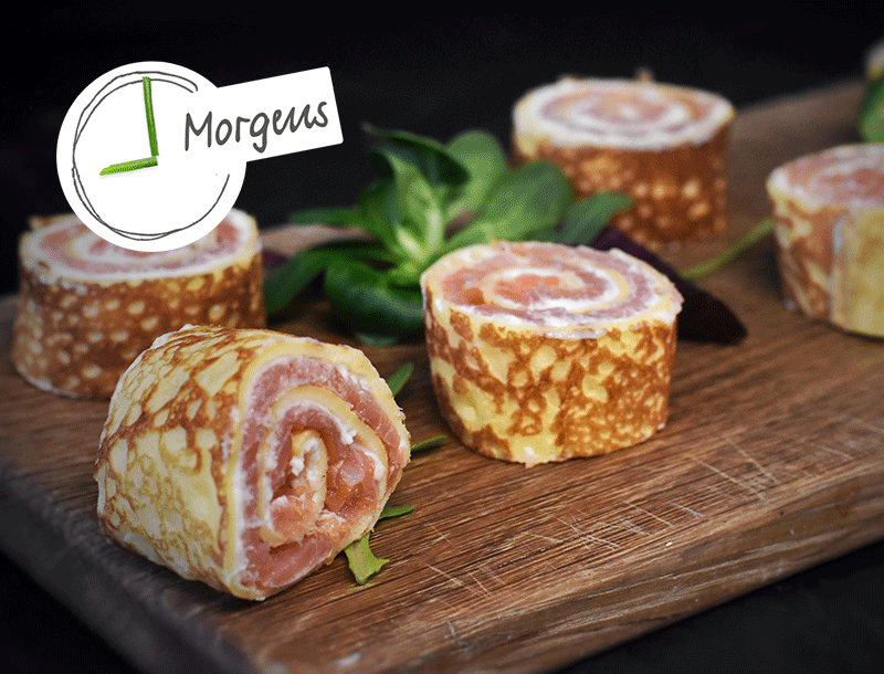 | 2 | Alma Schnittlauch und Frischkäse Natur in eine Schüssel geben und mit dem Handmixer cremig aufschlagen. Palatschinken auf eine Frischhaltefolie legen. Die Käsemasse auf den Palatschinken verteilen und mit den Lachsscheiben belegen. Zu einer Rolle formen und mit der Folie 1 Stunde im Kühlschrank erkalten lassen. |
